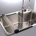 NEX Over the Sink Silicone Dish Drying Rack, Roll-Up Dish Drainer for Kitchen, Drying Mat (NX). Over the Sink Drying Rack, Kitchen Dish Drainer, Supremely Versatile Dish Drying Rack, Rollable BPA-Free Silicone Coated Cooling Rack, Handy Drain Board Mat for Over Sink Salad Prep Grey by Trimm. It lets the water drip right into the sink.