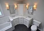 Add a medicine cabinet to match, and your new bathroom set will offer convenient over- and under-sink storage within a very small footprint. A rounded front lets it blend into the corner. Either way, take a look at these inspirational corner bathroom vanities to take control of your bathroom design.